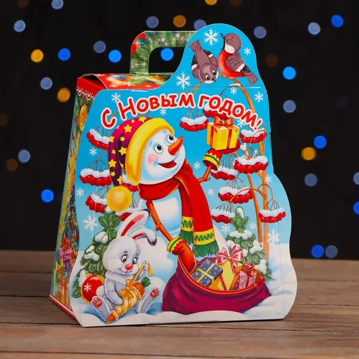 Подарочная коробка «Снеговик с подарком» 16×10×18 см
