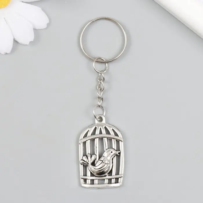 Брелок металл "Птица у клетки" серебро 2,2х3,6 см