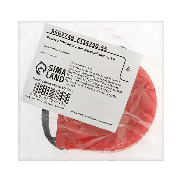 Рулетка ЛОМ промо, пластиковый корпус, 2 м × 12 мм