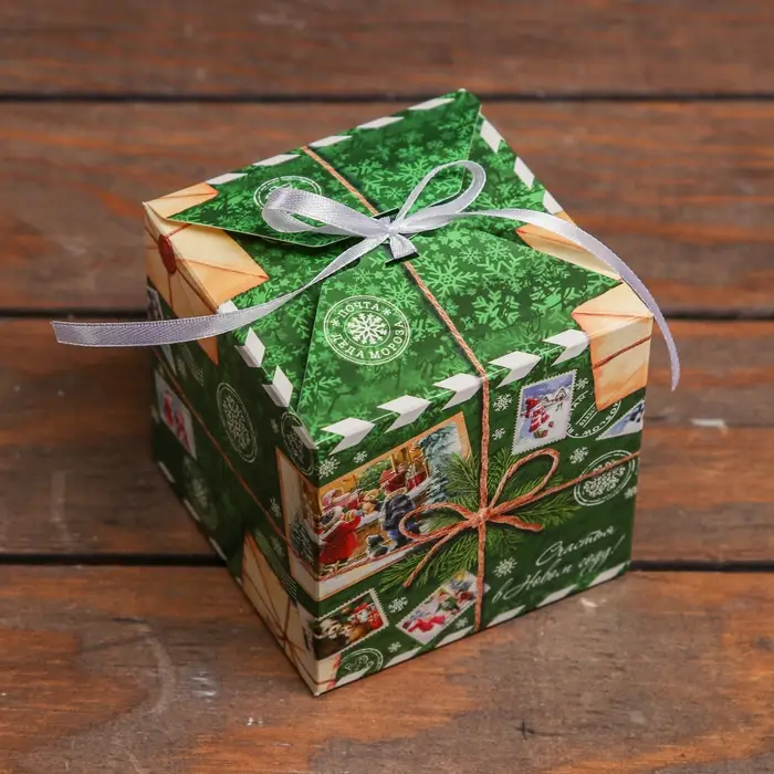 Коробка складная, подарочная новогодняя «Подарок» 10×10×10 см