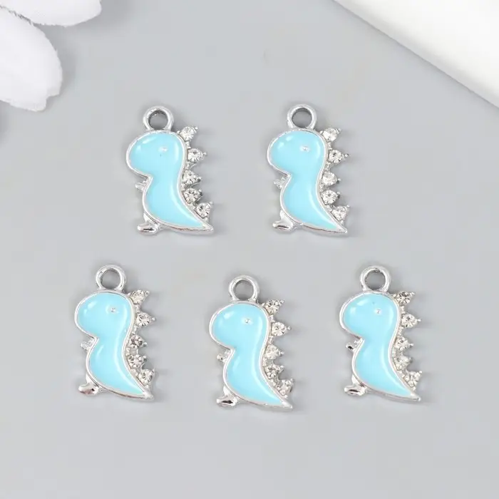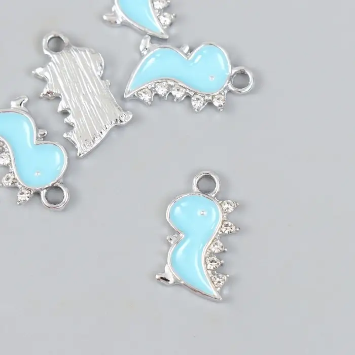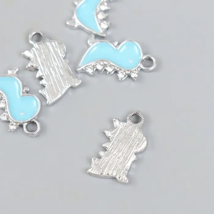 Декор для творчества металл, стразы "Динозаврик" серебро 0,2х1,1х1,8 см