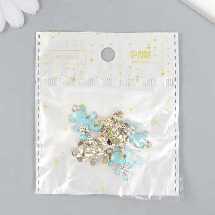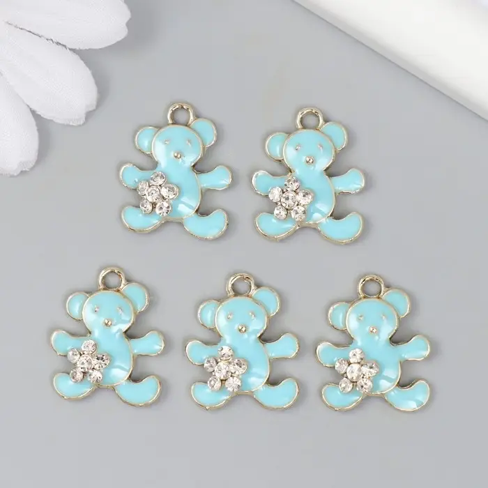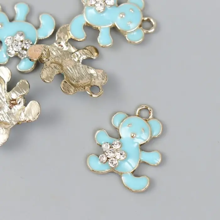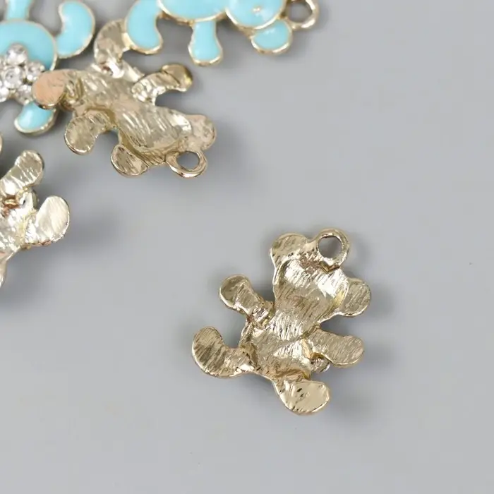 Декор для творчества металл, эмаль, стразы "Мишка с цветочком" голубой, золото 0,5х1,7х2 см 989119