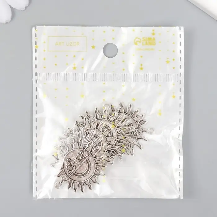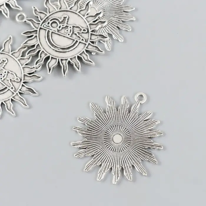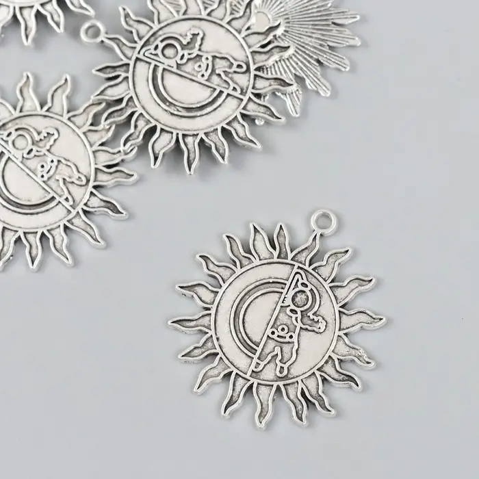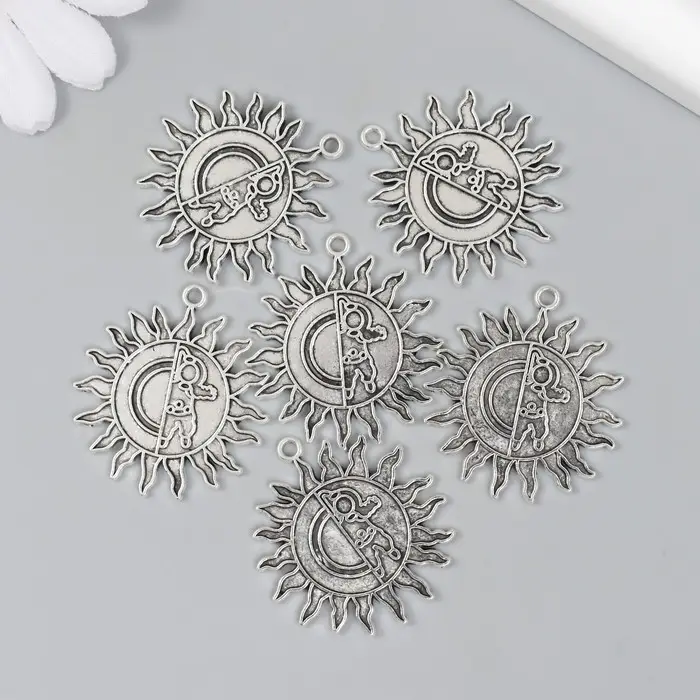 Металлический элемент, декоративная подвеска «Арт Узор. Солнце и космонавт», серебро, 3×3.3 см