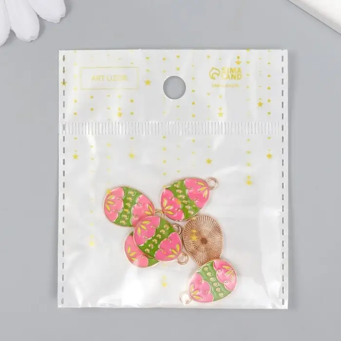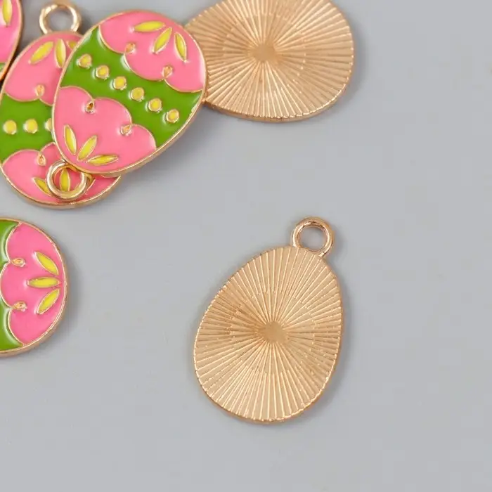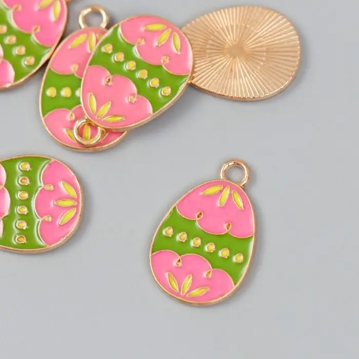 Декор для творчества металл, эмаль "Розово-зелёное яйцо" 1,4х2,2 см