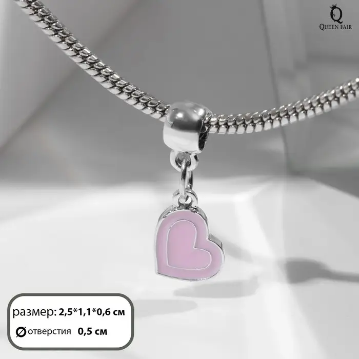 Подвеска «Сердечко», цвет розовый в серебре