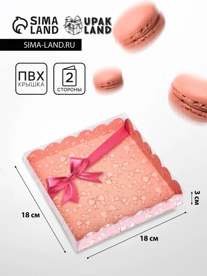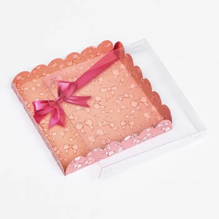 Коробка для печенья, «Розовый бант» 18×18×3 см