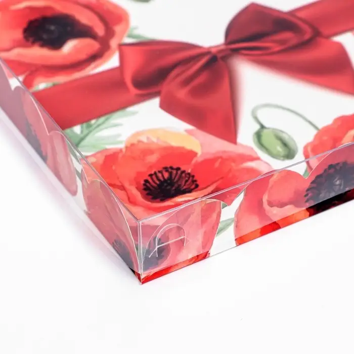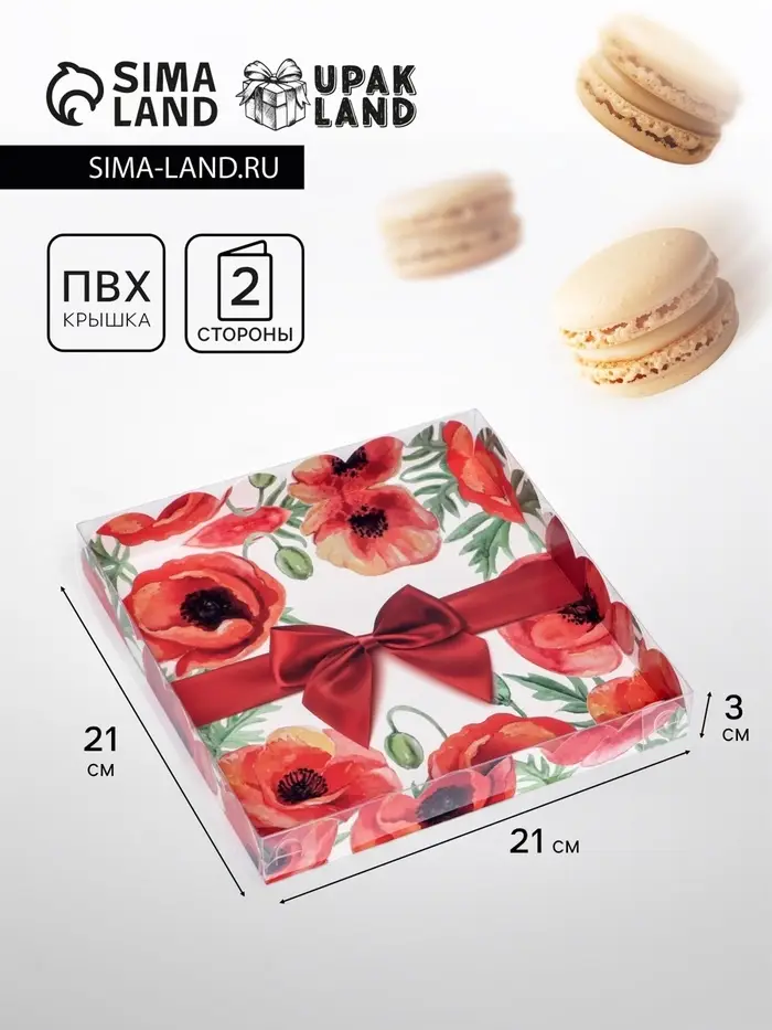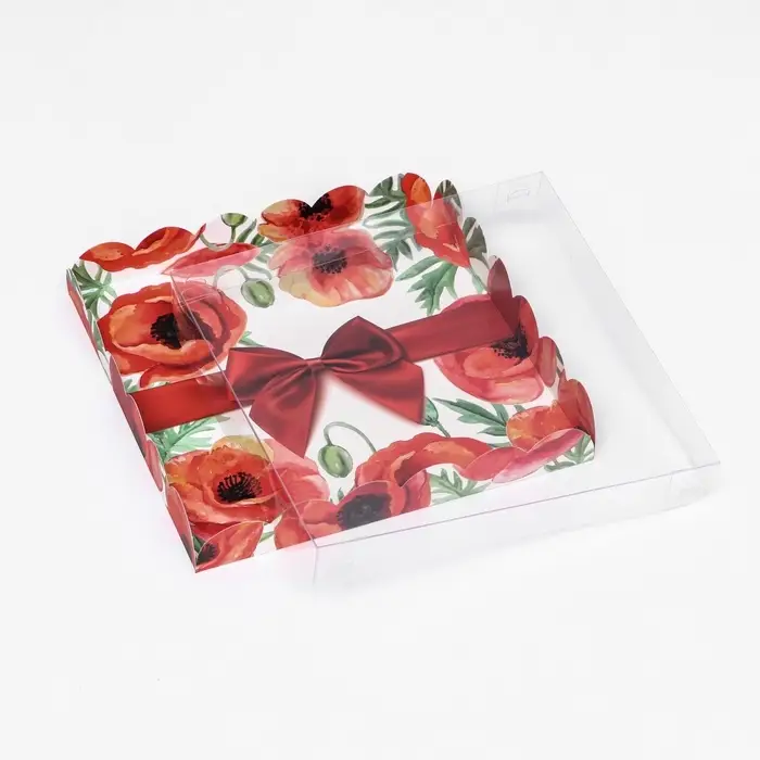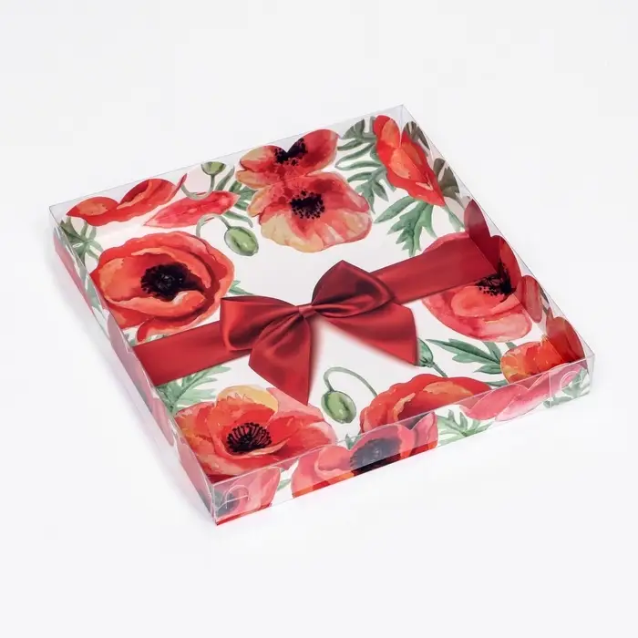 Коробка для печенья, кондитерская упаковка с PVC крышкой, «8 марта», 21 х 21 х 3 см