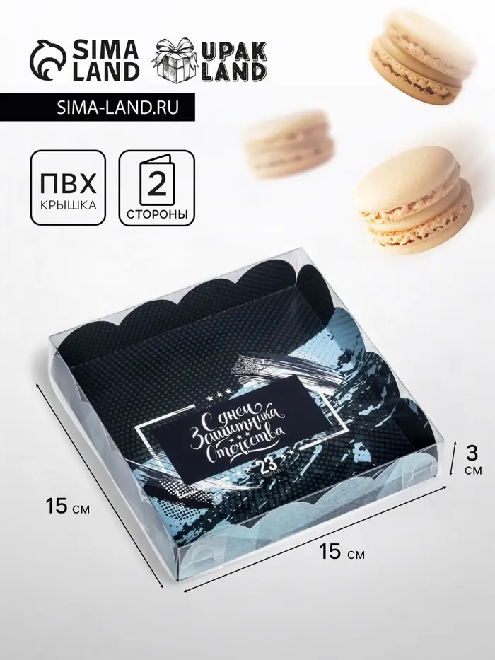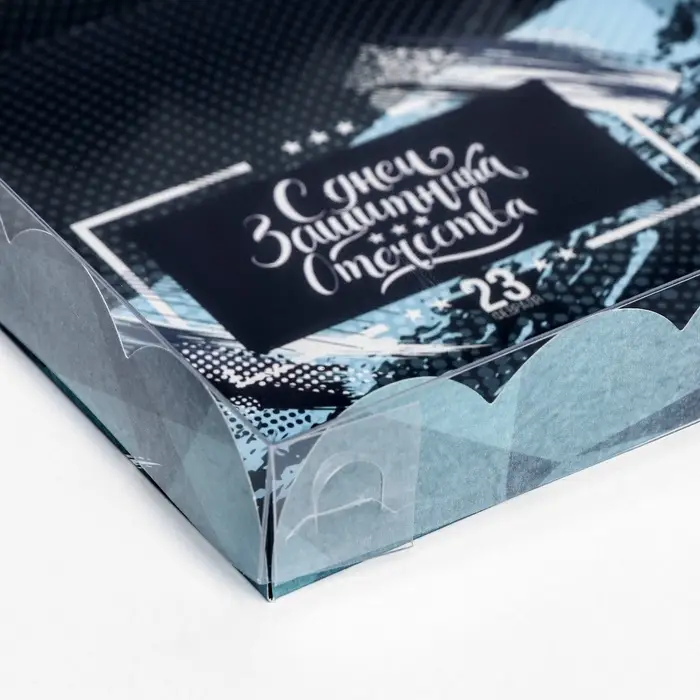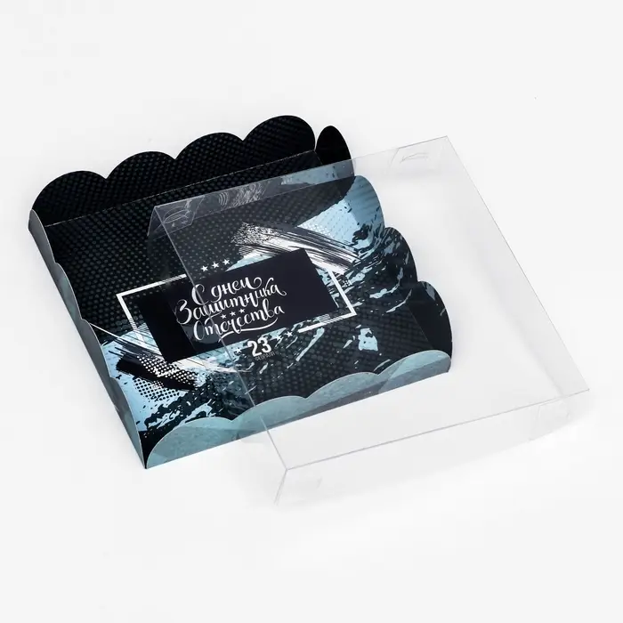 Коробка для печенья, кондитерская упаковка с PVC крышкой, «23 февраля», 21 х 21 х 3 см