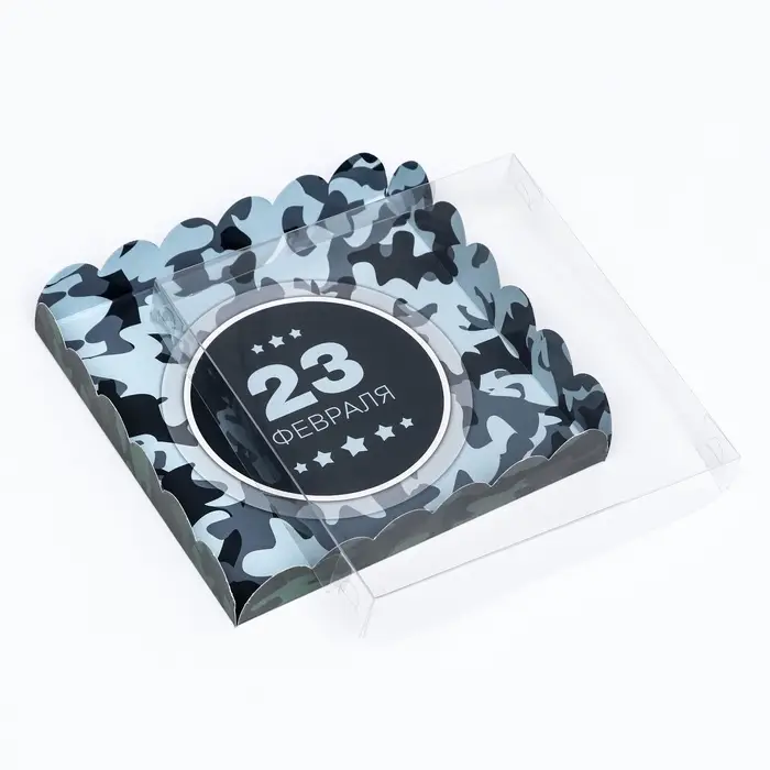 Коробка для печенья, кондитерская упаковка с PVC крышкой, «23 февраля», 21 х 21 х 3 см