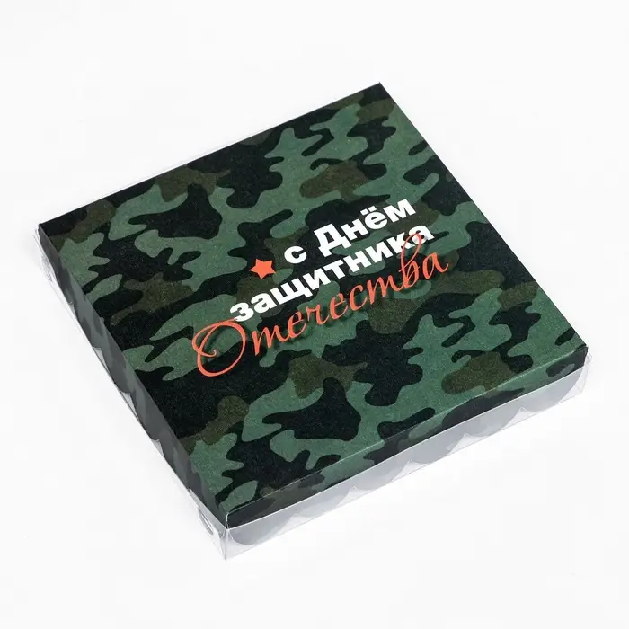 Коробка для печенья, « С Днем защитника Отечества» 18×18×3