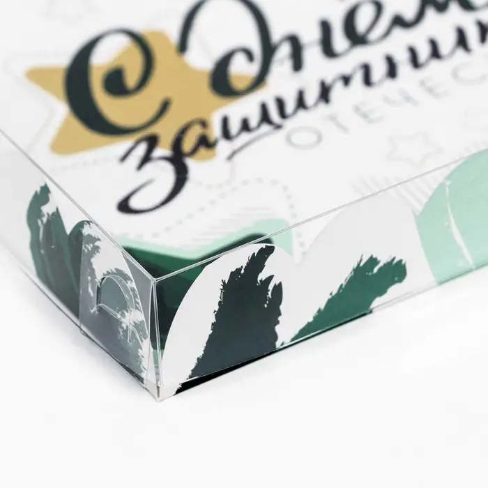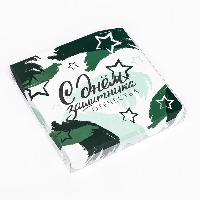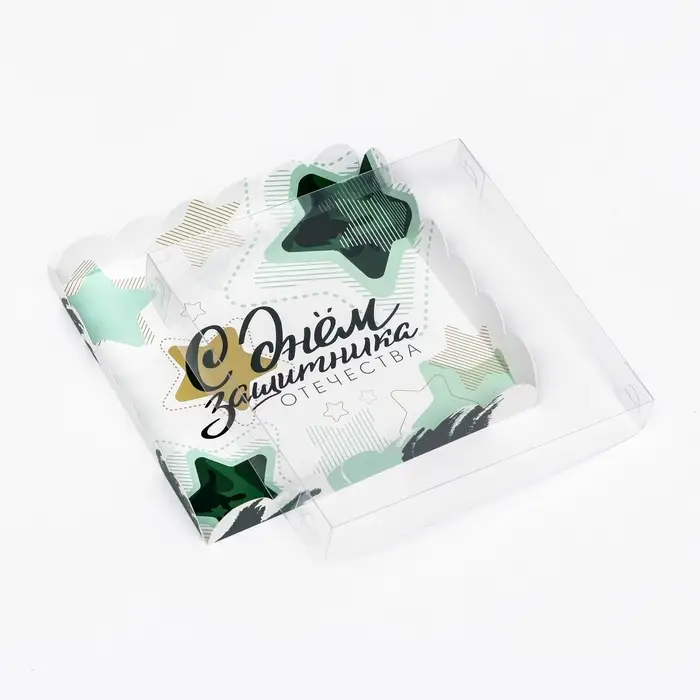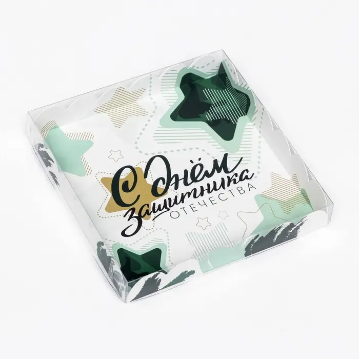 Коробка для печенья, кондитерская упаковка с PVC крышкой, «23 февраля», 21 х 21 х 3 см