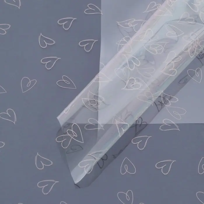 Плёнка для цветов упаковочная глянцевая прозрачная «Сердца», красные, 0.6 x 10 м