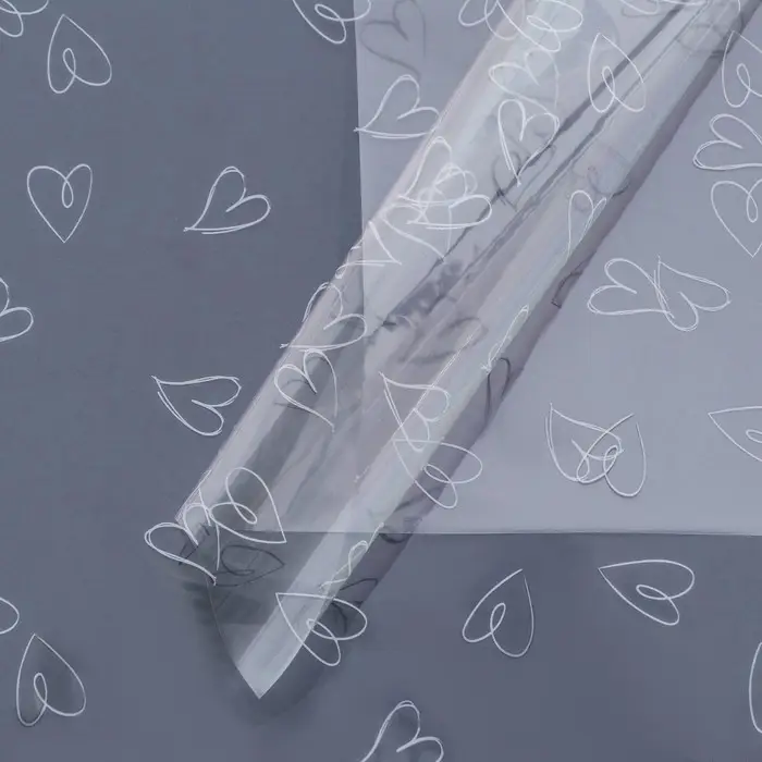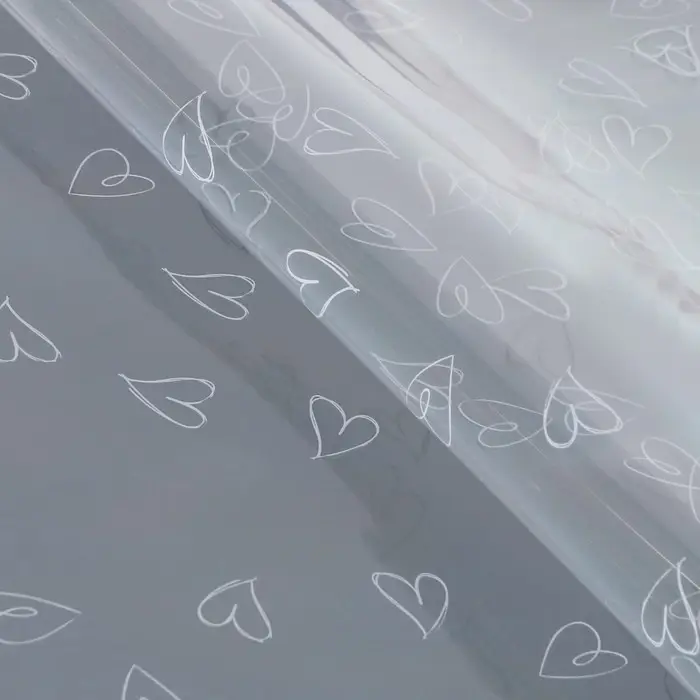 Плёнка для цветов упаковочная глянцевая прозрачная «Сердца», красные, 0.6 x 10 м