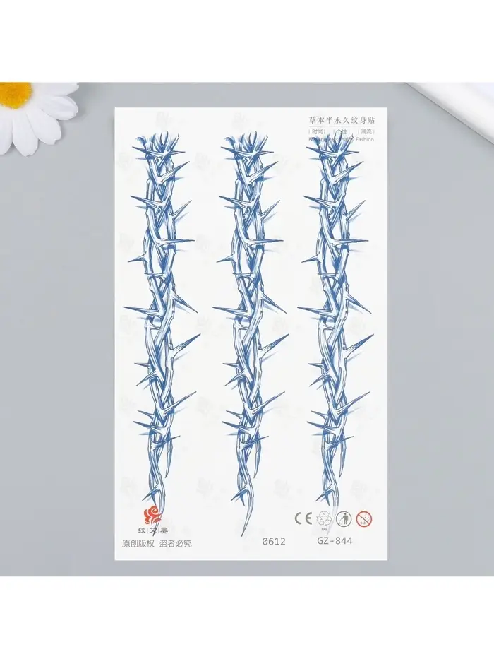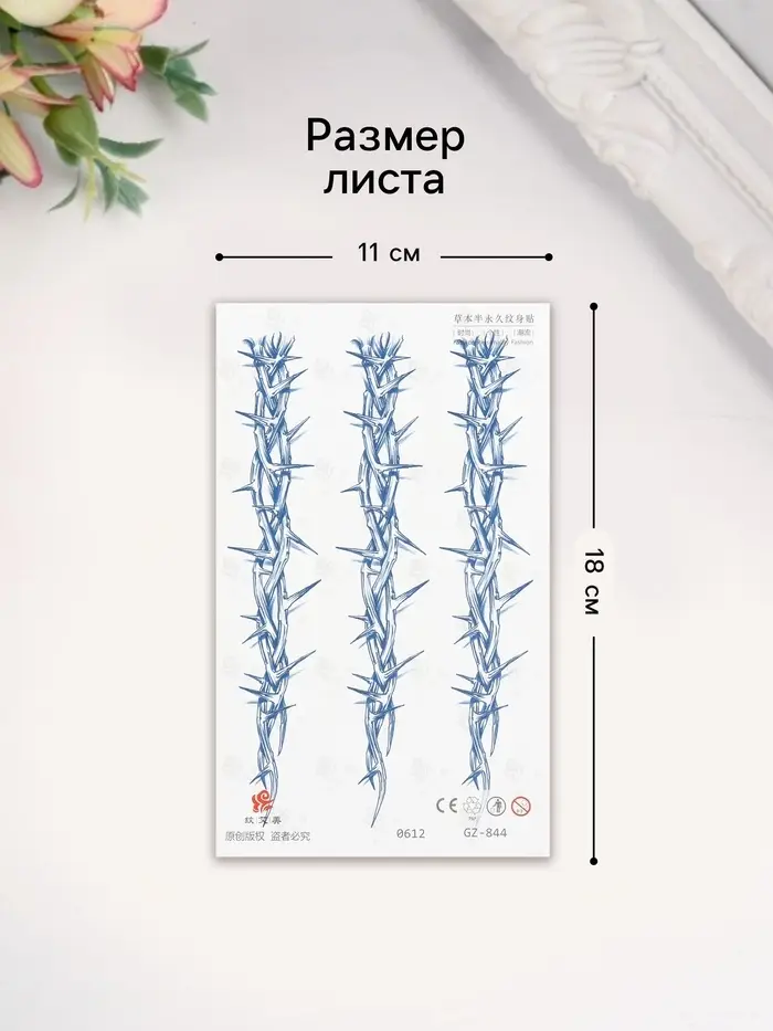 - Выразительный дизайн: Татуировка в виде ветвей с шипами придаст вашему образу дерзкий и эффектный вид. Идеально подходит для запястья, подчеркивая стиль и оригинальность.