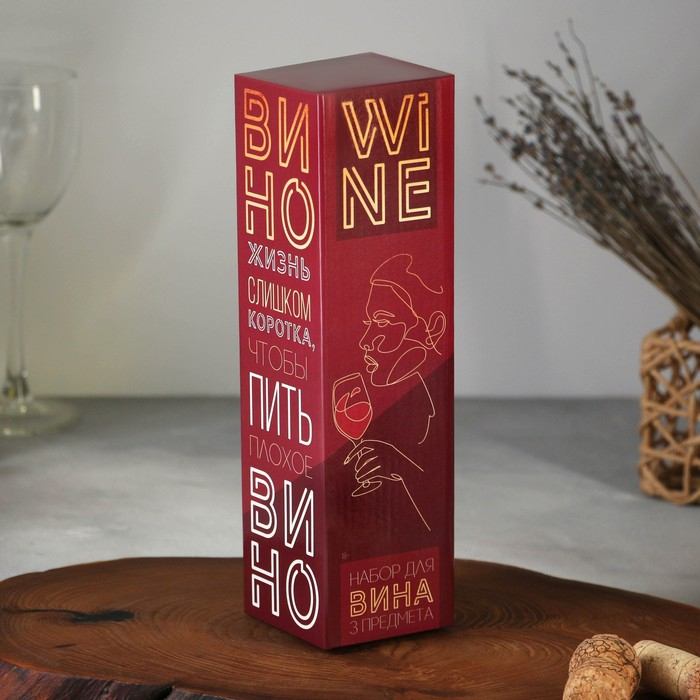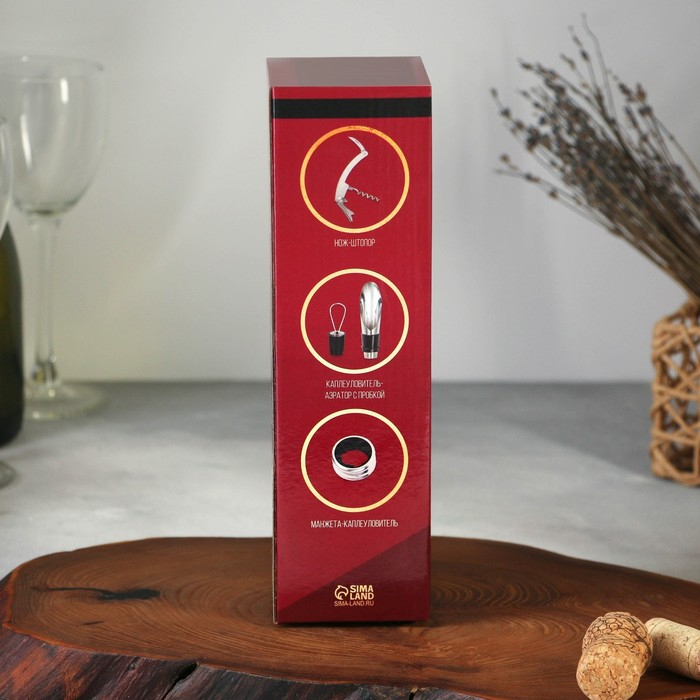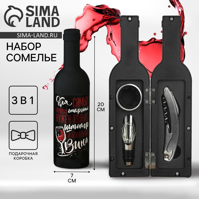 Винный набор: штопор, аэратор и каплеулавливатель для бутылки вина «Для самых важных открытий».