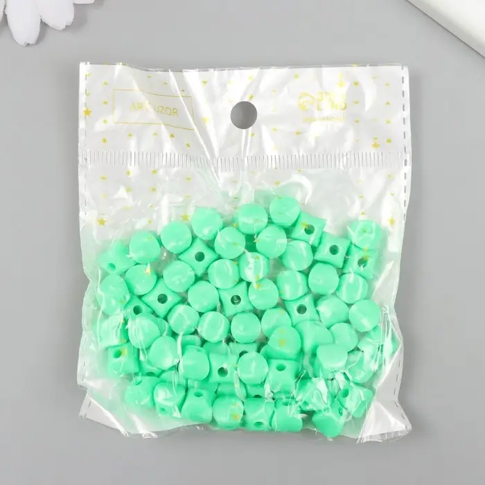 Бусины для творчества пластик "Кубик со сплющенными краями" зелёный набор 30 гр d=0,8 см
