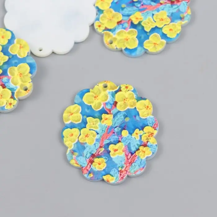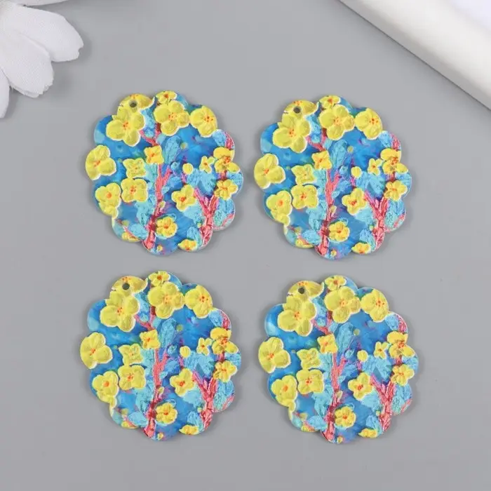 Декор для творчества акрил "Жёлтые цветы на голубом" 0,2х3,5х3,9 см