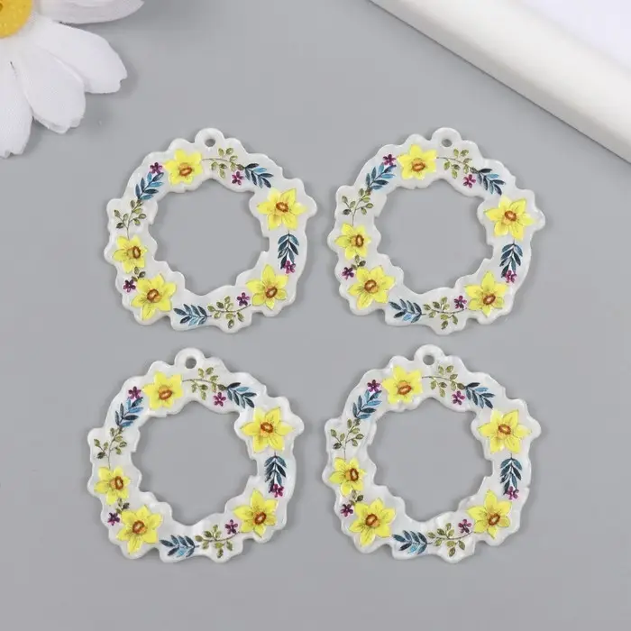 Декор для творчества акрил "Веночек с жёлтыми цветами" 0,2х3,9х3,9 см
