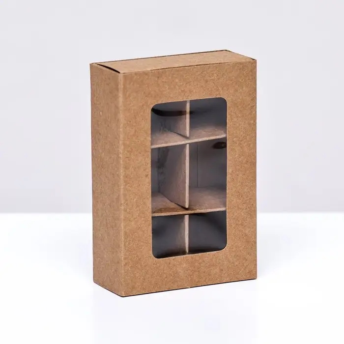Коробка для 6 конфет, 8.7×5.8×2.5 см, Тонкие разделители, крафт