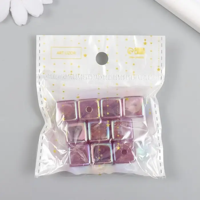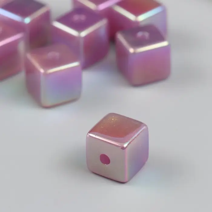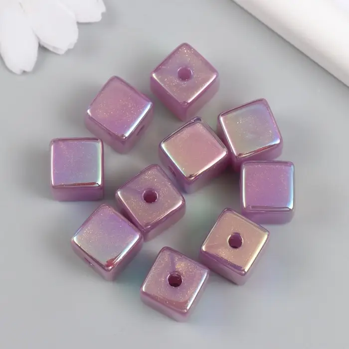 Бусина для творчества пластик "Кубик. Перламутровый блеск" фиолет 1,4х1,4х1,4 см