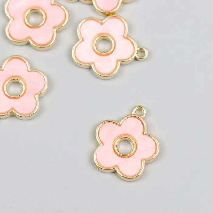 Декор для творчества металл, акрил "Розовый цветочек" золото 0,2х1,6х1,7 см