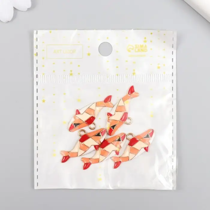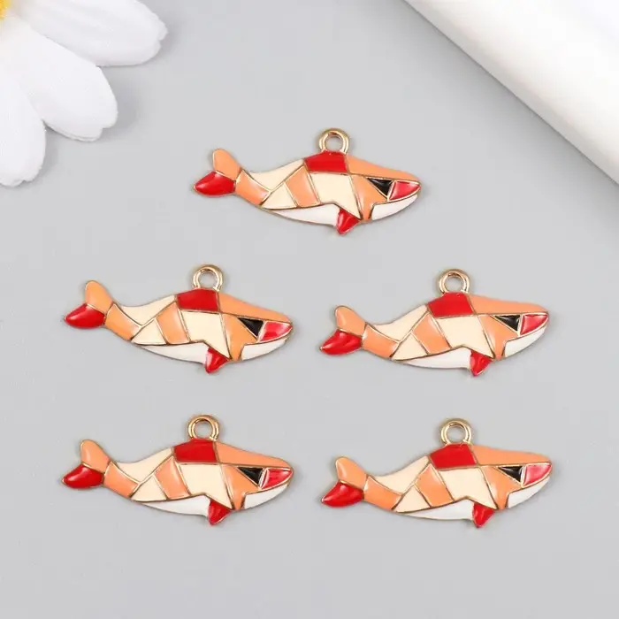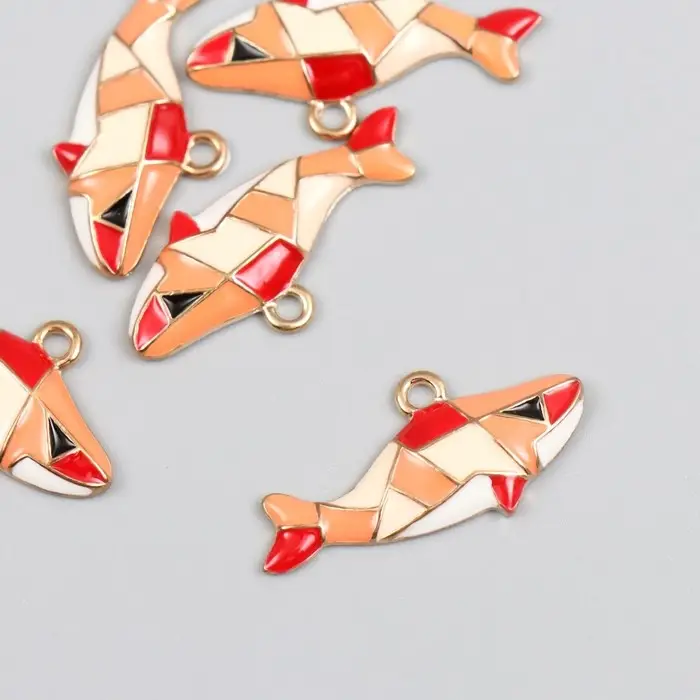 Декор для творчества металл, эмаль "Акула оранжевая" золото 0,3х3,1х1,5 см