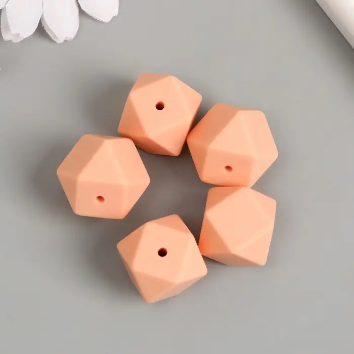 Бусина силикон "Многогранник" телесный розовый d=1,7 см
