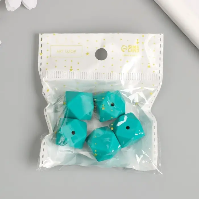 Бусина силикон "Многогранник" морская лагуна d=1,7 см
