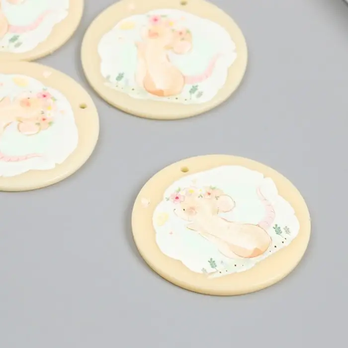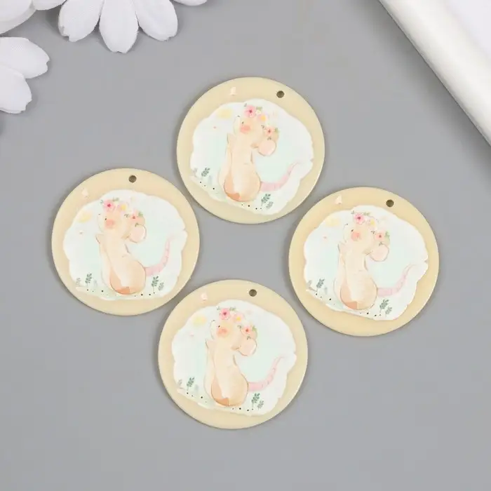 Декор для творчества акрил "Мышка в цветочном венке" 0,2х4х4 см