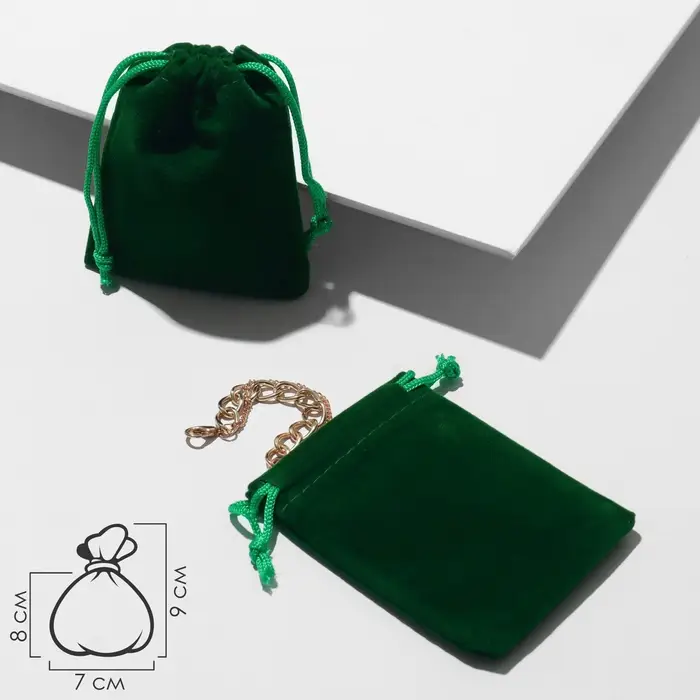 Мешочек бархатный, 7×9 см (+ - 1 см), зелёный