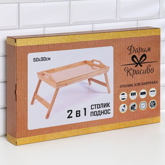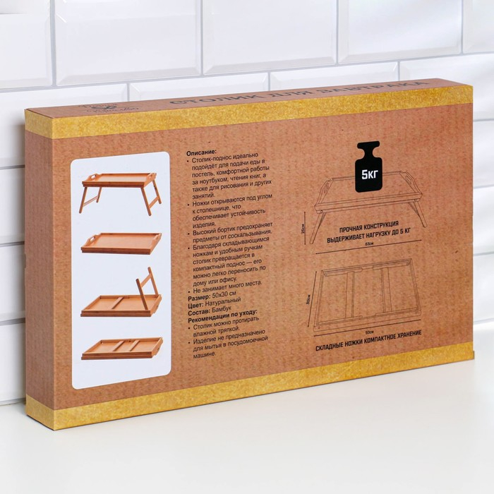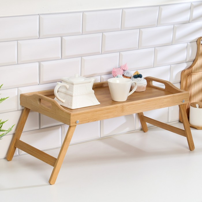 Столик-поднос для завтрака со складными ножками, 50×30×23 см, бамбук