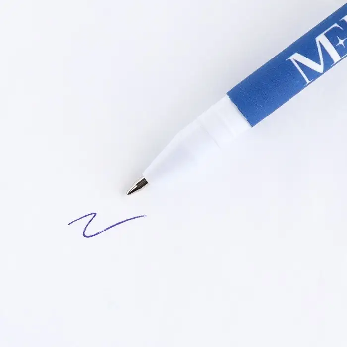 Ручка шариковая синяя паста, пластиковая со звездой "С 23 Февраля"