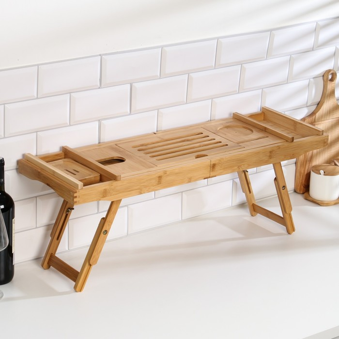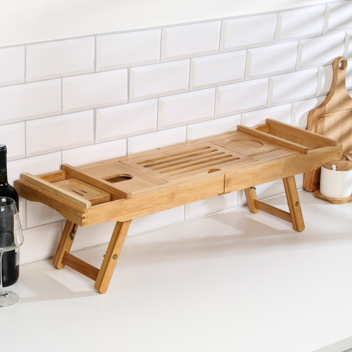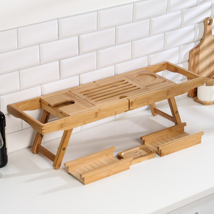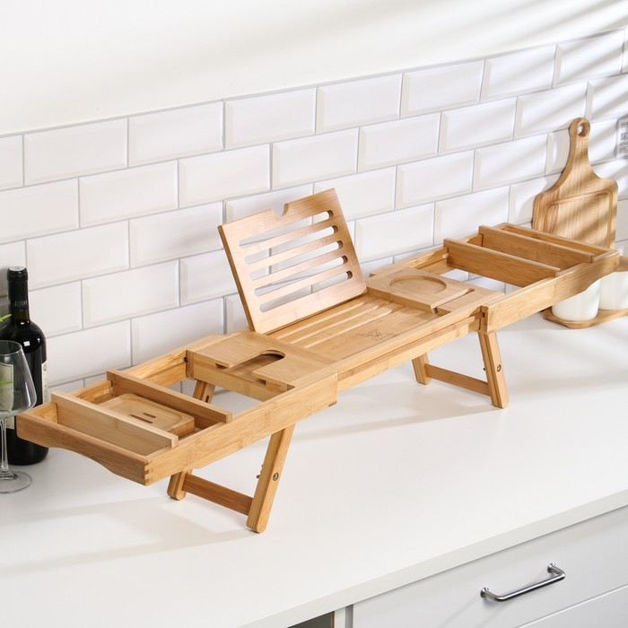 Столик- винница для ванны, большой, 75 (109) х 23 х 4,5 см, дерево