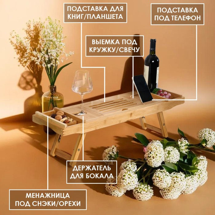 Столик-поднос для завтрака со складными ножками, 50×30×23 см, бамбук