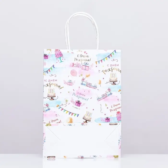 Пакет крафт «С Днём Рождения», 18×8×25 см