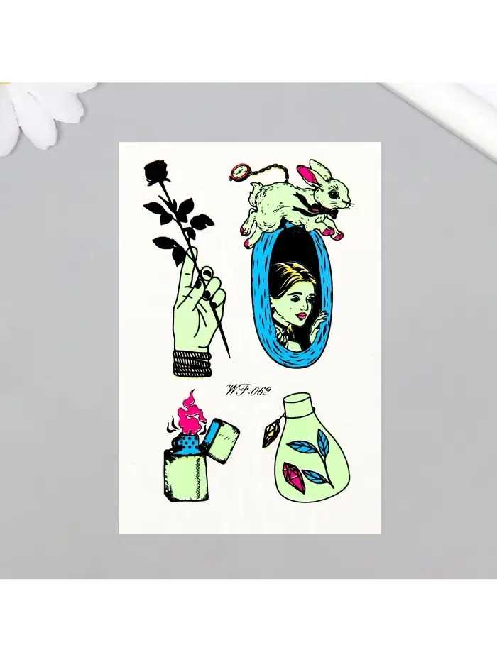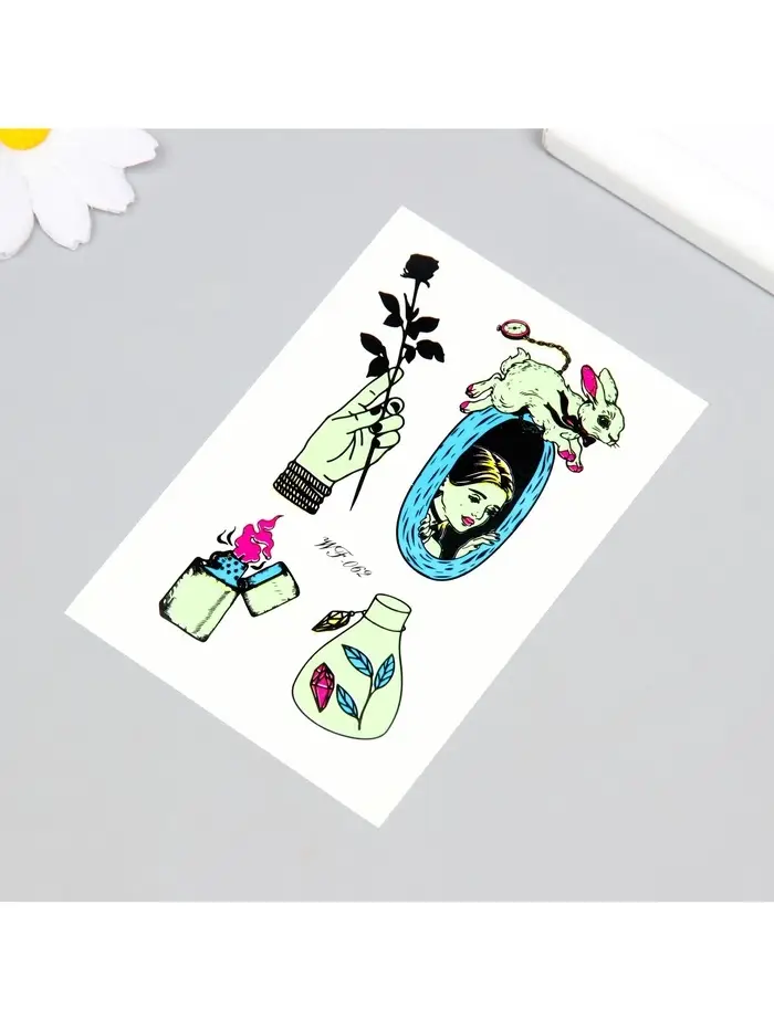 Переводные тату на тело светящиеся цветные «Алиса в норе», 14.3×7.5 см