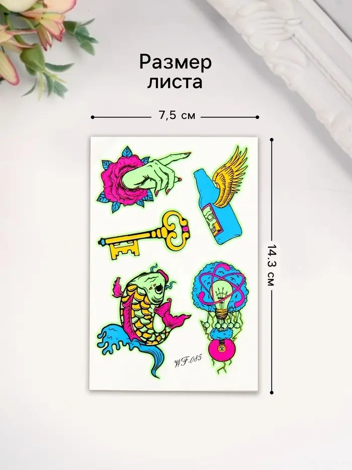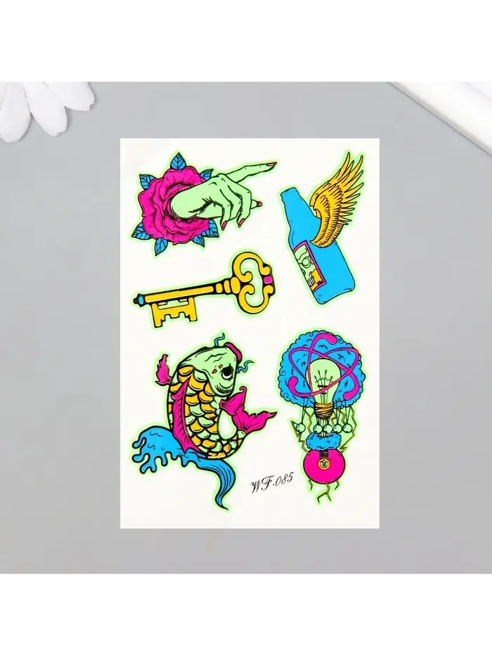 - Яркие в темноте: Эти татуировки светятся в темноте, создавая эффект магии и сюрприза. Добавьте немного волшебства в свой вечерний образ, создав уникальный светящийся акцент.
