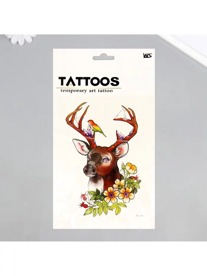 - Яркий дизайн: Переводная татуировка имеет разноцветное изображение оленя и птички. Она украсит ваш образ, добавив немного дикой природы и цвета в повседневную жизнь.