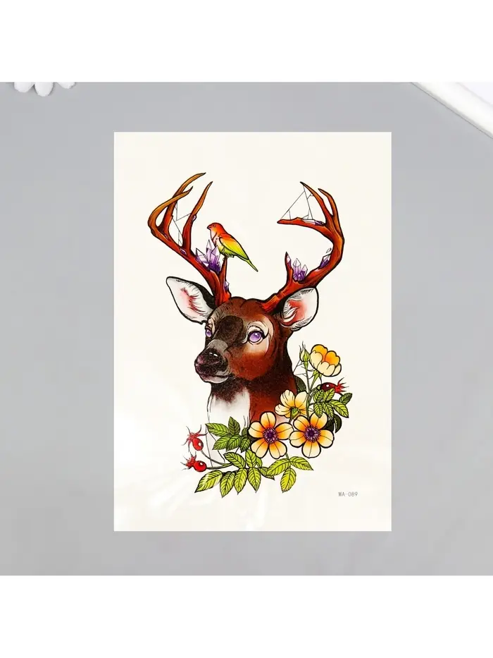 Искусство на коже для юных мечтателей! Цветная переводная татуировка «Олень и птичка» — это уникальное украшение для тела, которое переносит мир животных прямо на кожу.