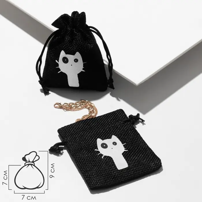 Мешочек подарочный «Кот», 7×9 см, чёрно-белый