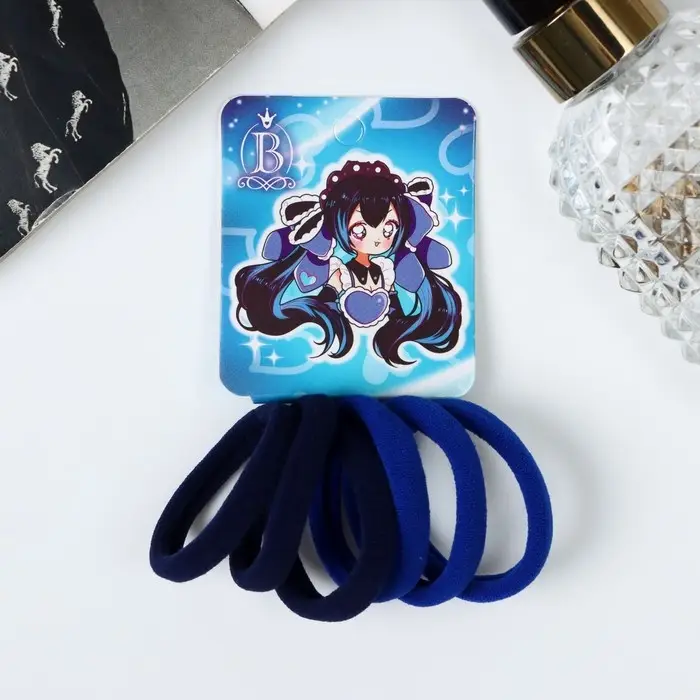 Резинка для волос "Комиксы" (набор 6 шт) девчонка сердце, 4 см, синий