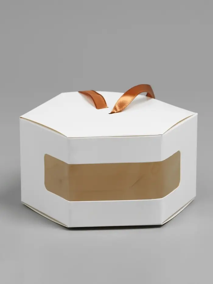 Коробка шестигранная, с окном, белый, 20×12×7 см