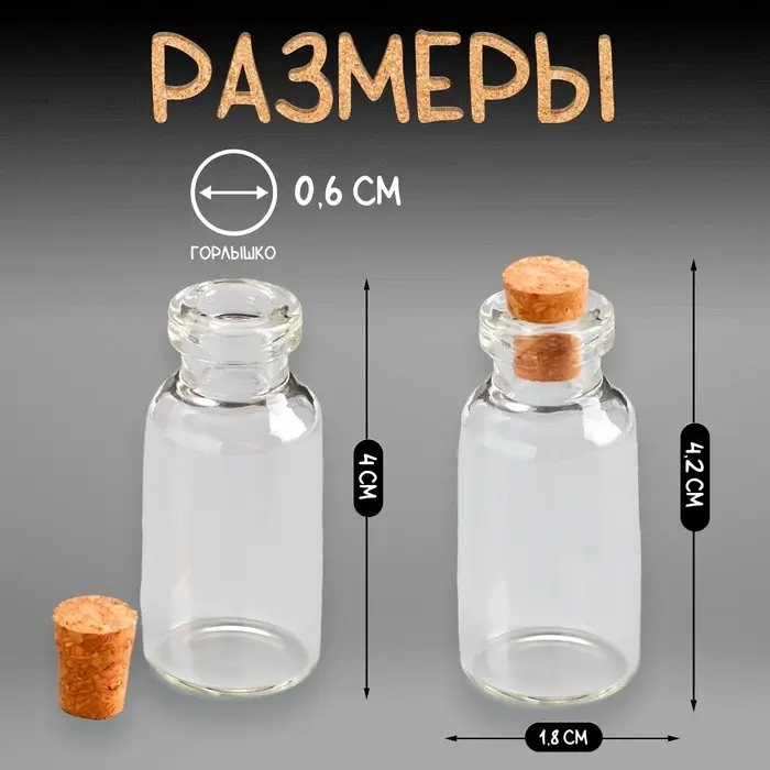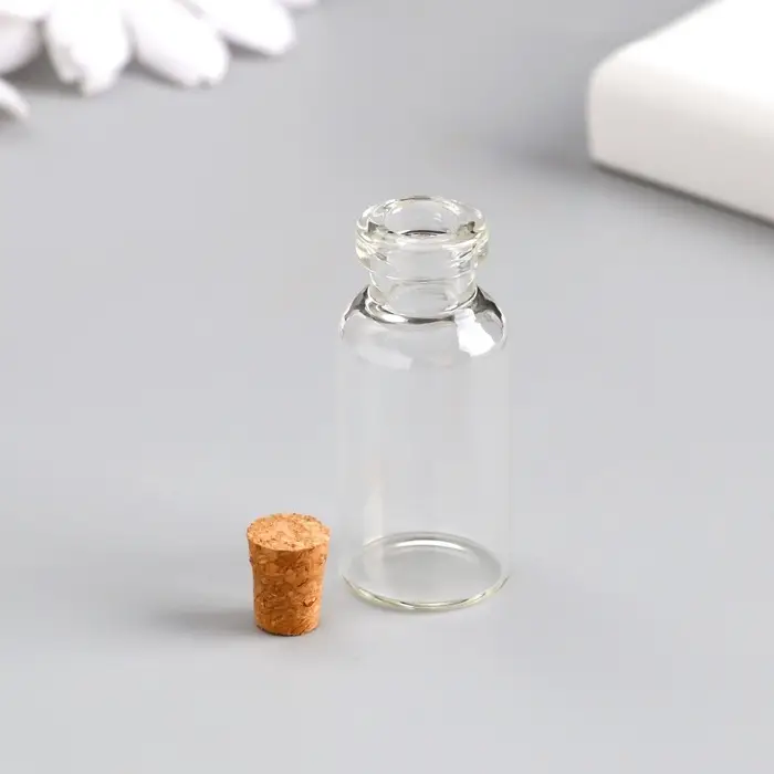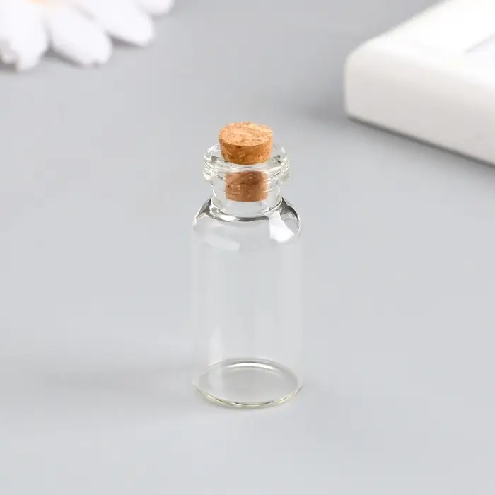 Маленькая стеклянная баночка прозрачная «Бутылочка с пробкой», для творчества и декора, 5 мл, 4×1.8×1.8 см