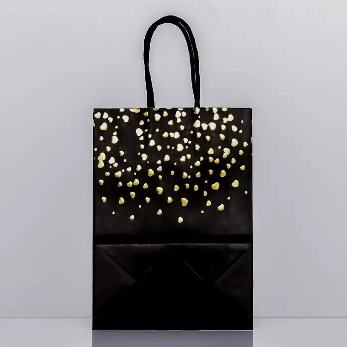 Пакет крафт «Сердца», чёрный, 21×15×8 см