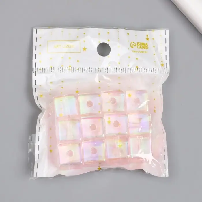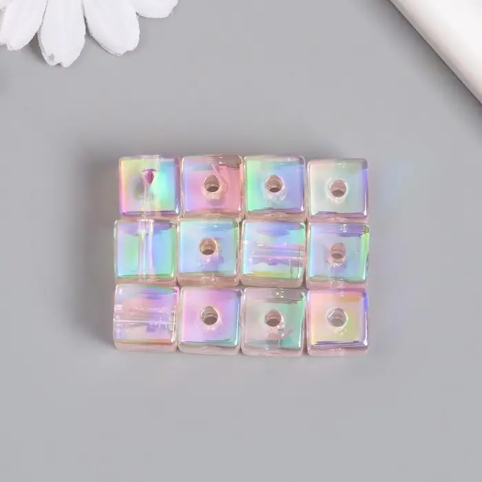 Бусина для творчества пластик "Кубик. Прозрачный перламутр" розовый 1,4х1,4х1,4 см