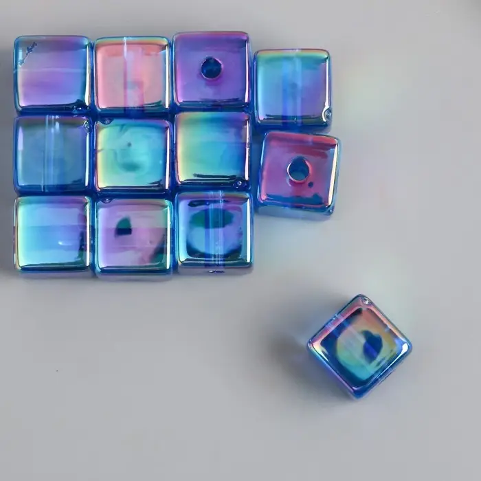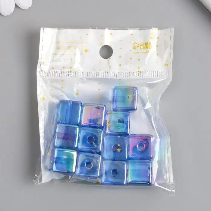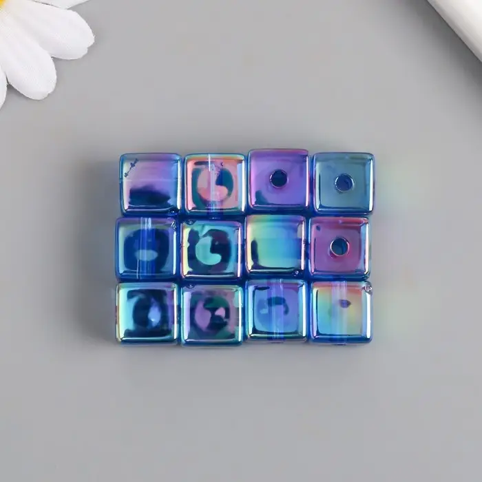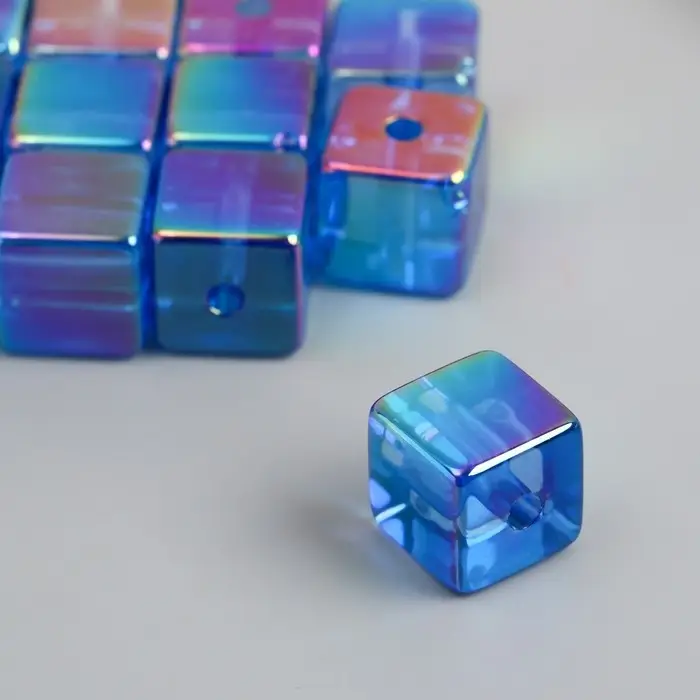 Бусина для творчества пластик "Кубик. Прозрачный перламутр" синий 1,4х1,4х1,4 см