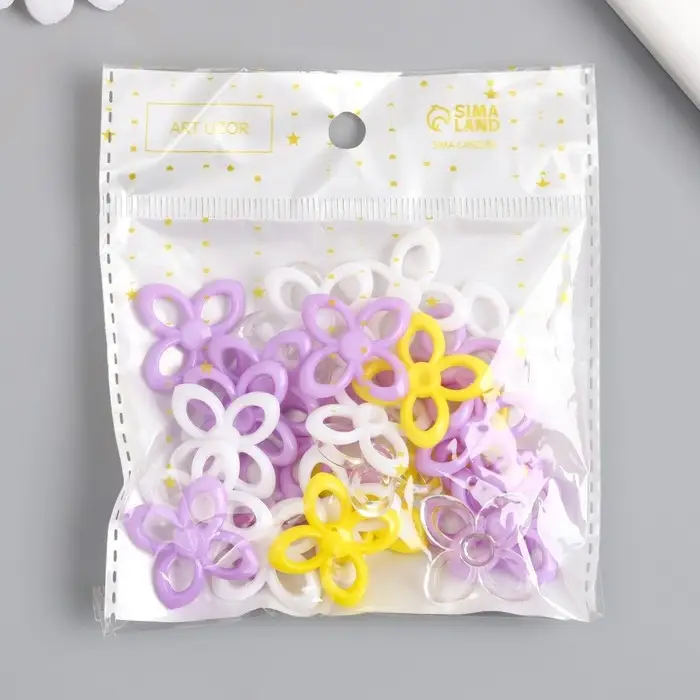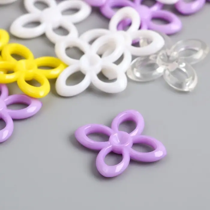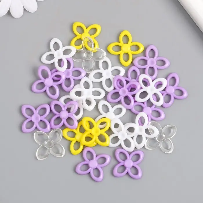 Декор для творчества "Цветок. Жёлтый, фиолет, белый и прозрачный" н-р 20 гр 2,8х2,8х0,4 см