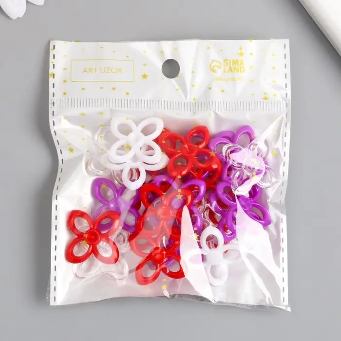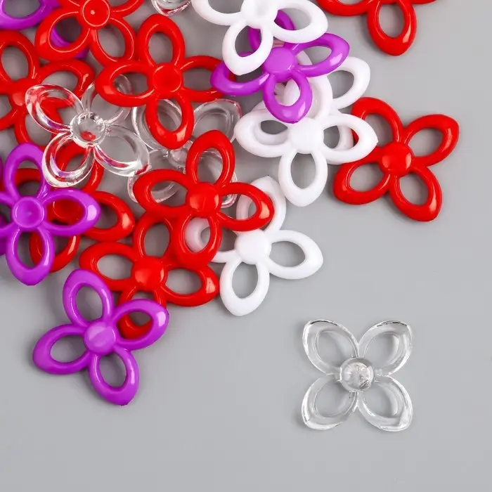 Декор для творчества "Цветок. Красный, фиолет, белый и прозрачный" н-р 20 гр 2,8х2,8х0,4 см 992805