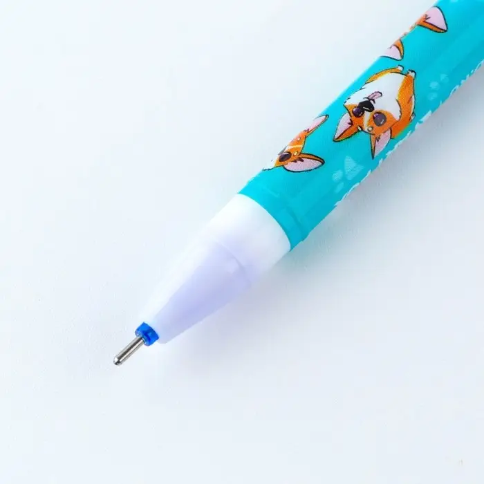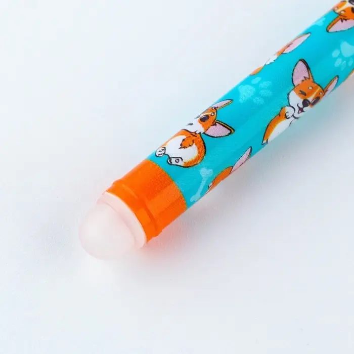 Ручка пластик пиши-стирай с колпачком «Корги», синяя паста, гелевая 0,5 мм