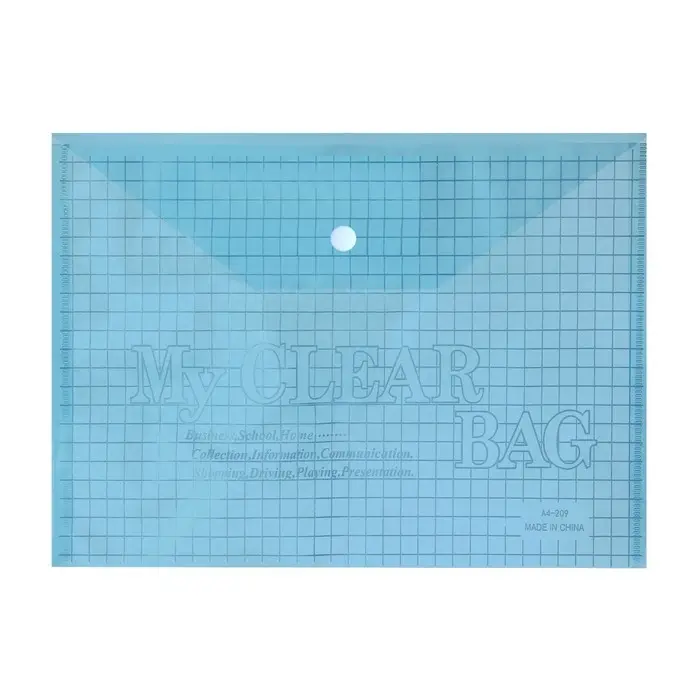 Папка-конверт на кнопке, А4, 80 мкм, "Клетка", тонированная, синяя